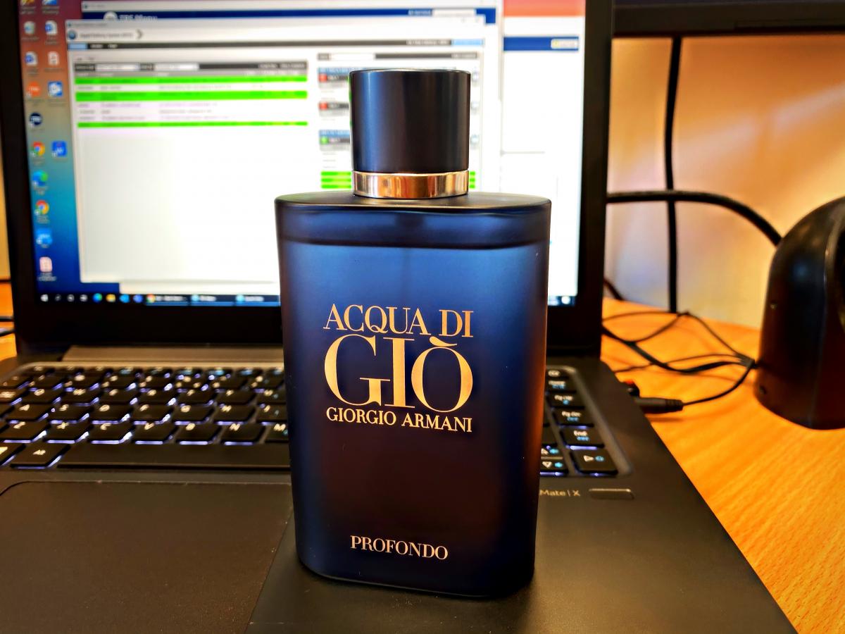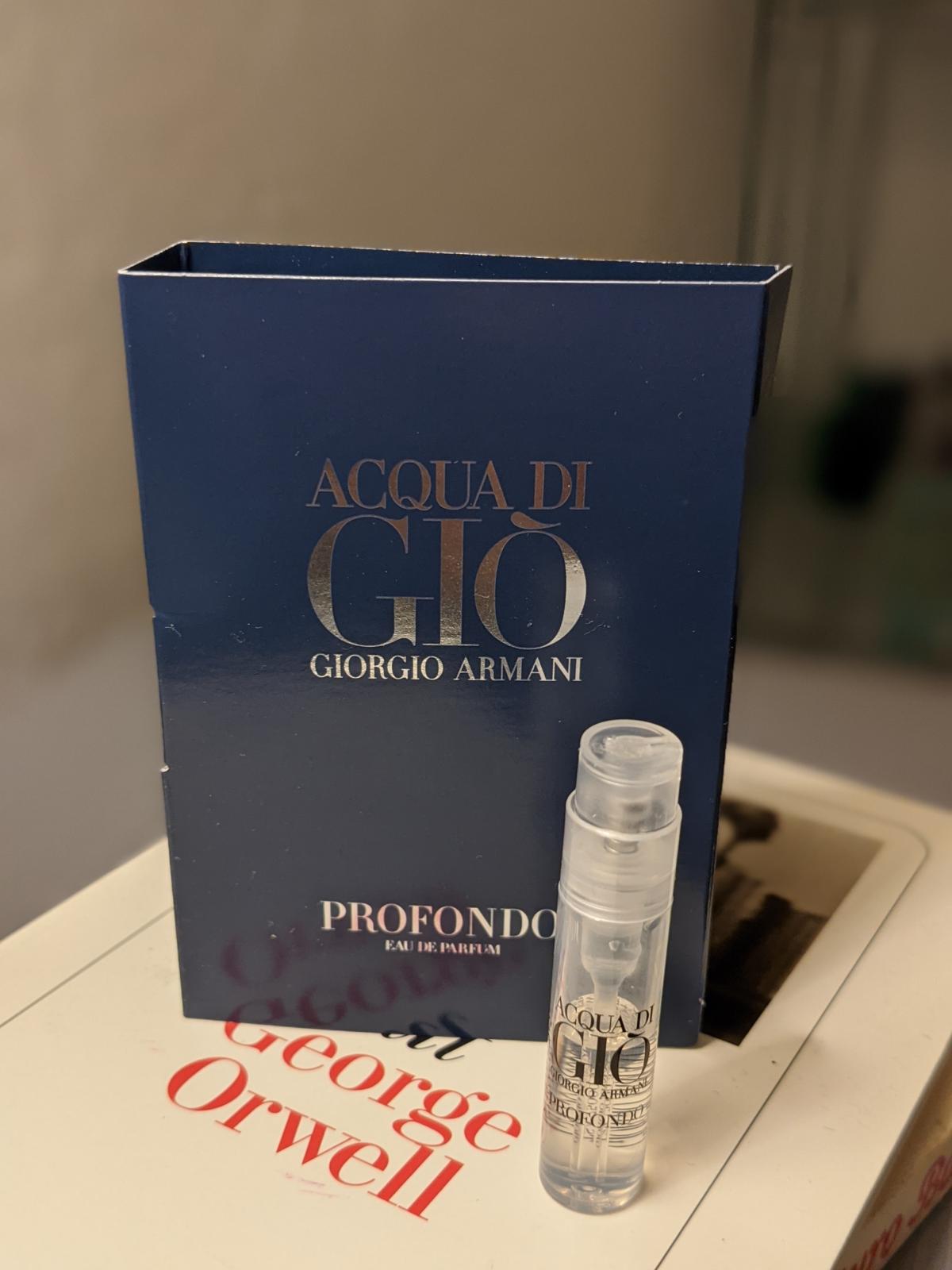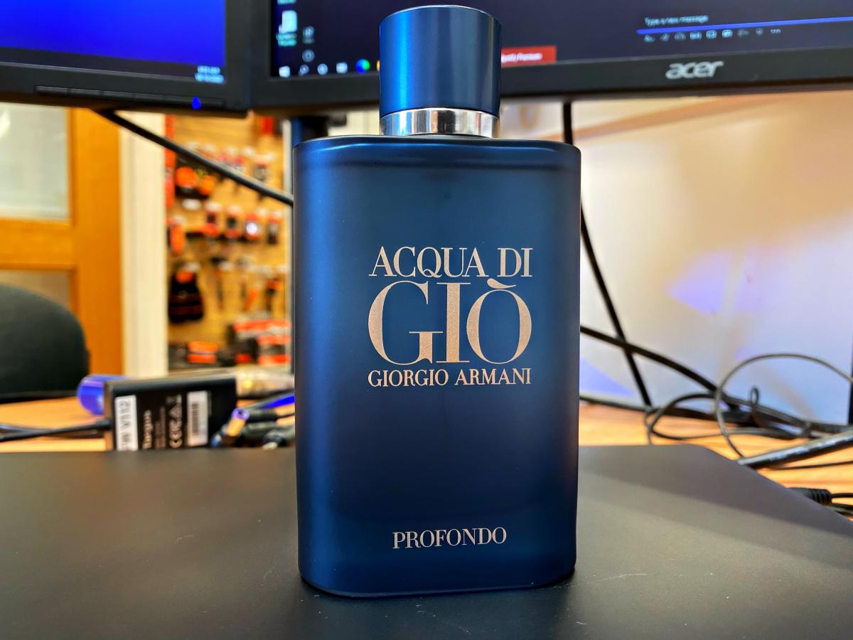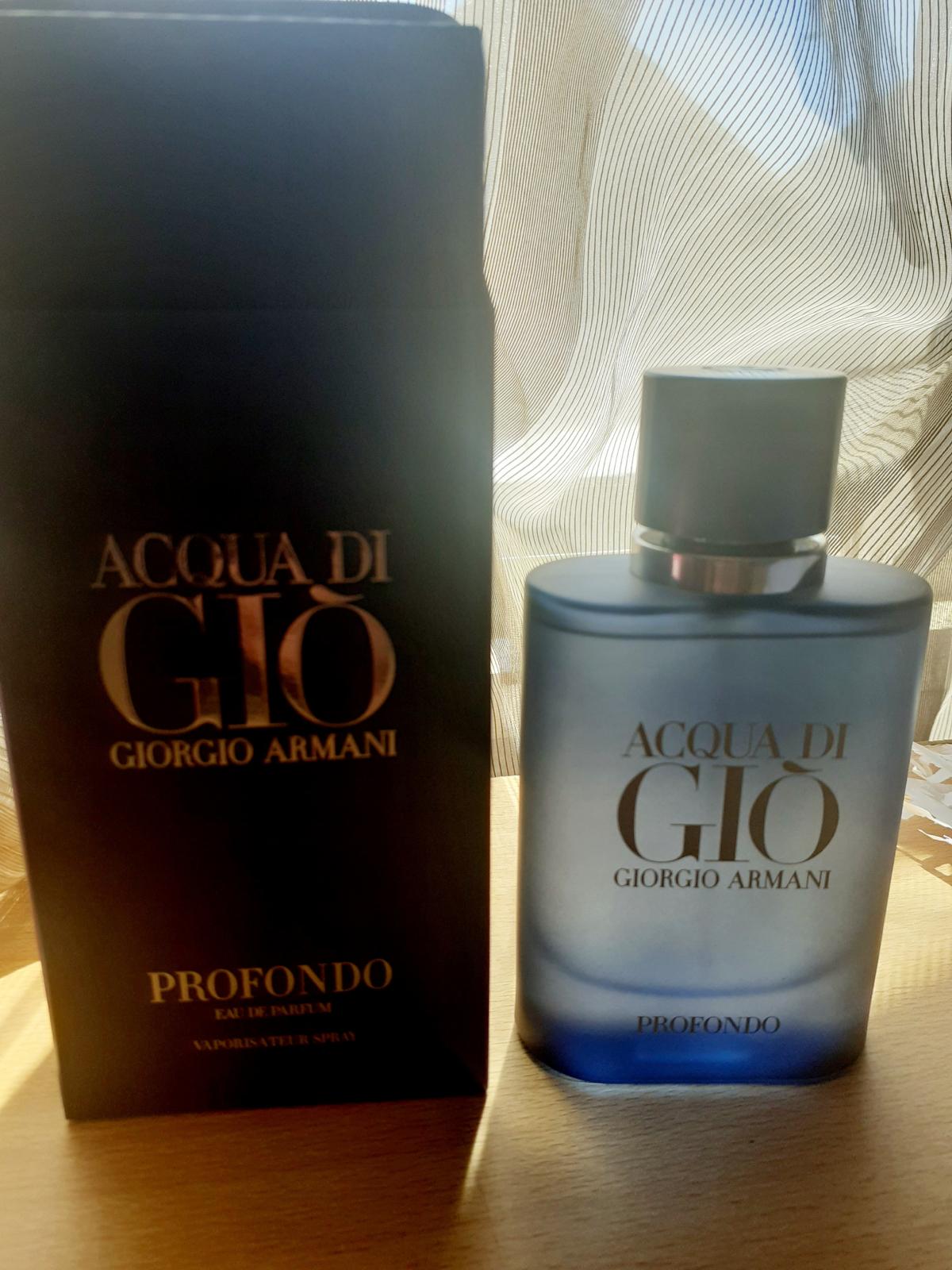 הבושם Acqua di Giò Profondo של חברת Giorgio Armani הוא ניחוח שרך ארומטי לגברים. הניחוח חדש. Acqua di Giò Profondo הושק בשנת 2020. ופותח ע"י Alberto Morillas. התווים העליונים הם תווים מיימיים, Aquozone, תפוז ברגמוט ו- מנדרינה ירוקה; תווי האמצע הם רוזמרין, ברוש, לבנדר ו- מסטיק או חומר איטום; תווי הבסיס הם הערות מינרל, מושק, פצ'ולי ו- ענבר.